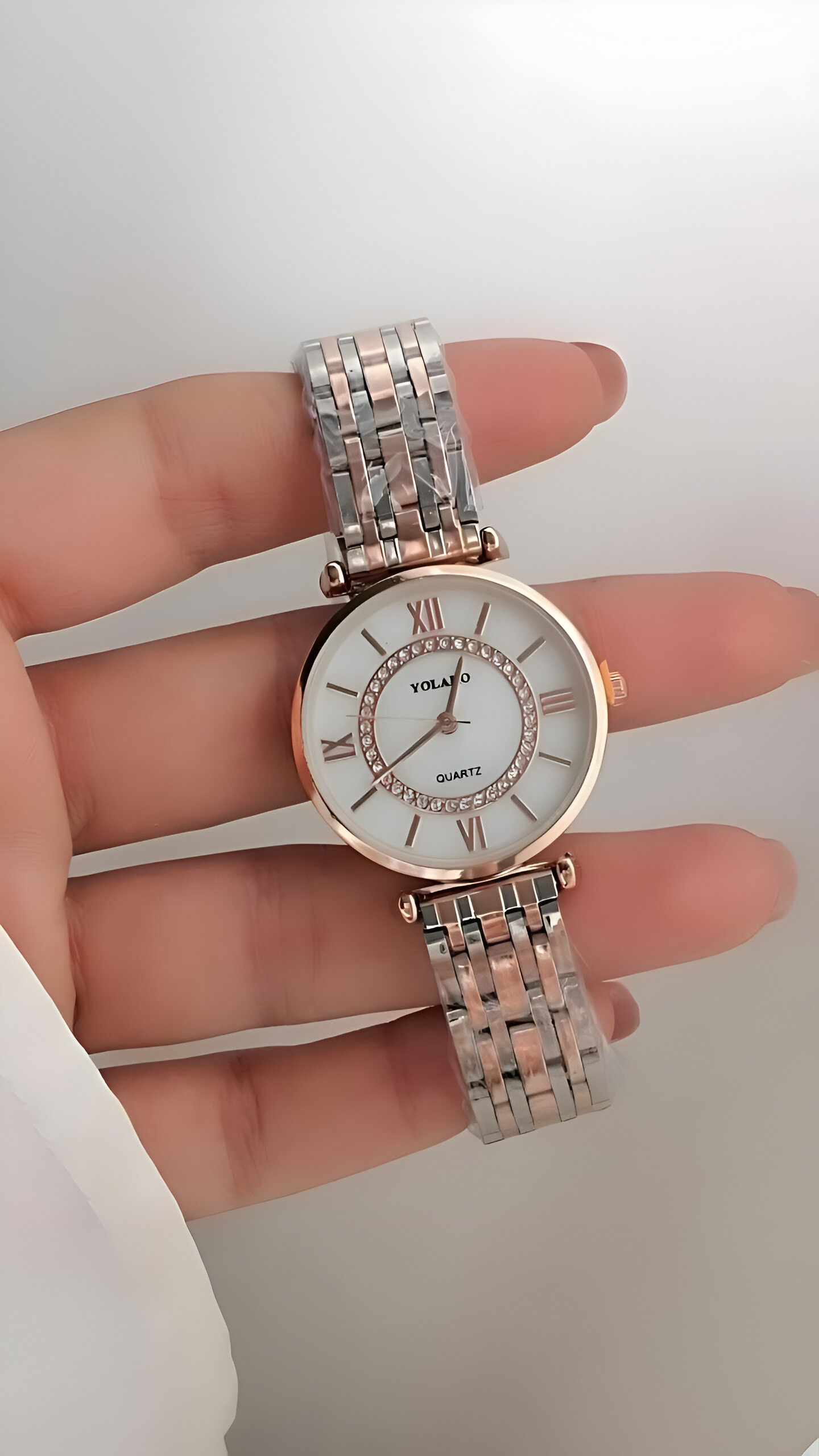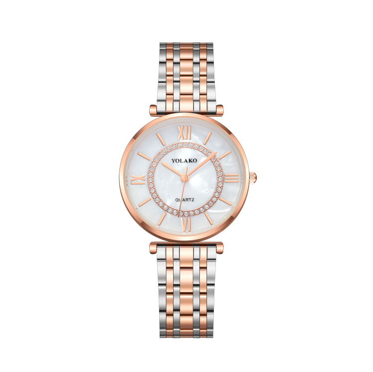 ساعت Yolako صفحه صدفی نگین دار با جعبه و باتری اضافه