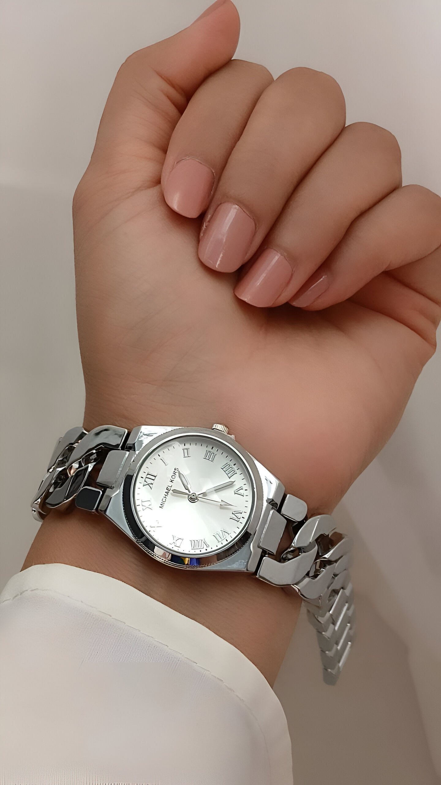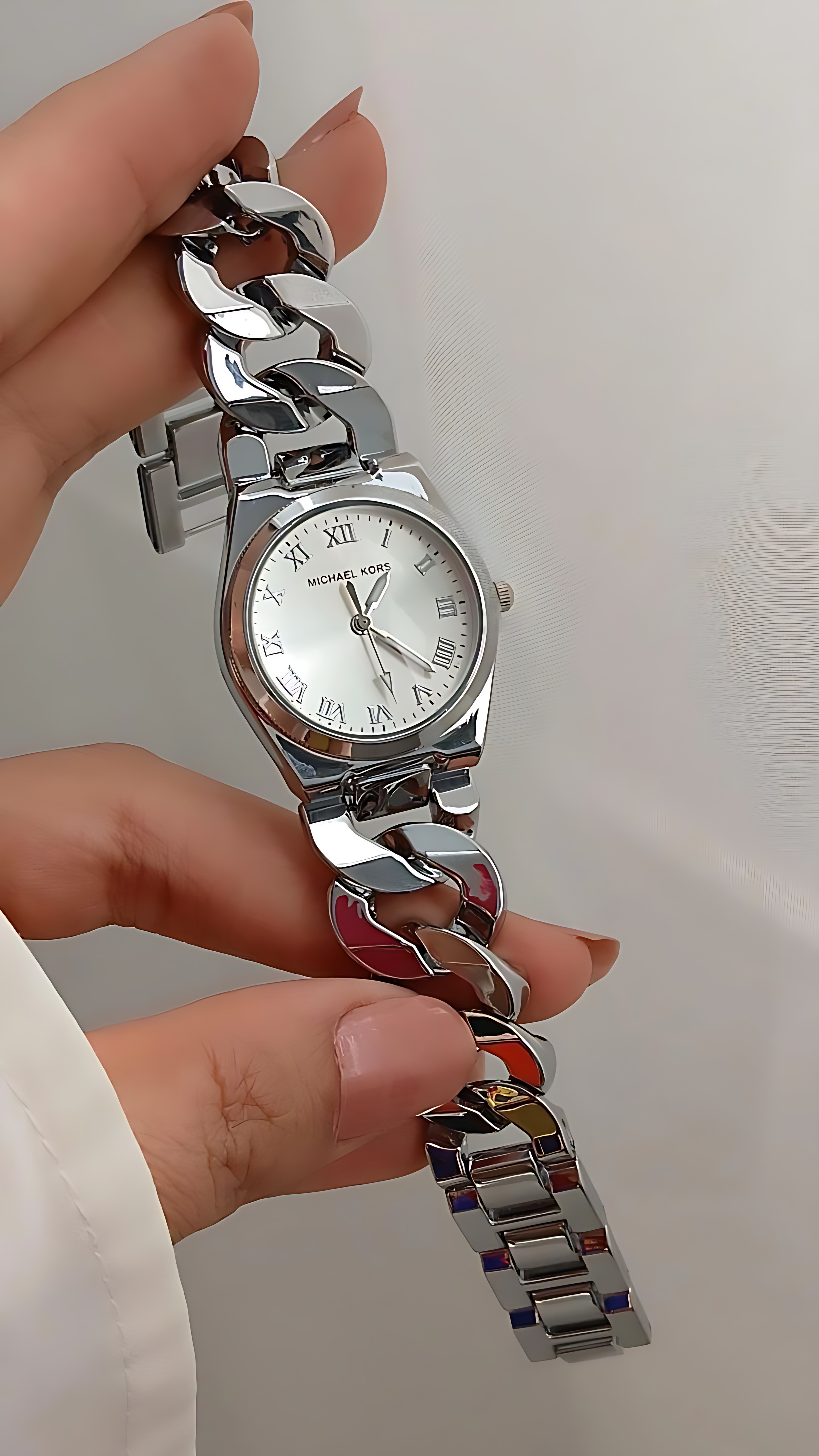 از پر طرفدارترین و پرفروش ترین ساعتمچی زنانه در سال ۲۰۲۵ در دو رنگ صفحه با بند استیل و رنگ ثابت و قفل دستبندی صفحه دایره ای و شیشه معدنی ضد آب با حک اسم برند پشت ساعت قطر صفحه حدود ۳۰ میلیمتر