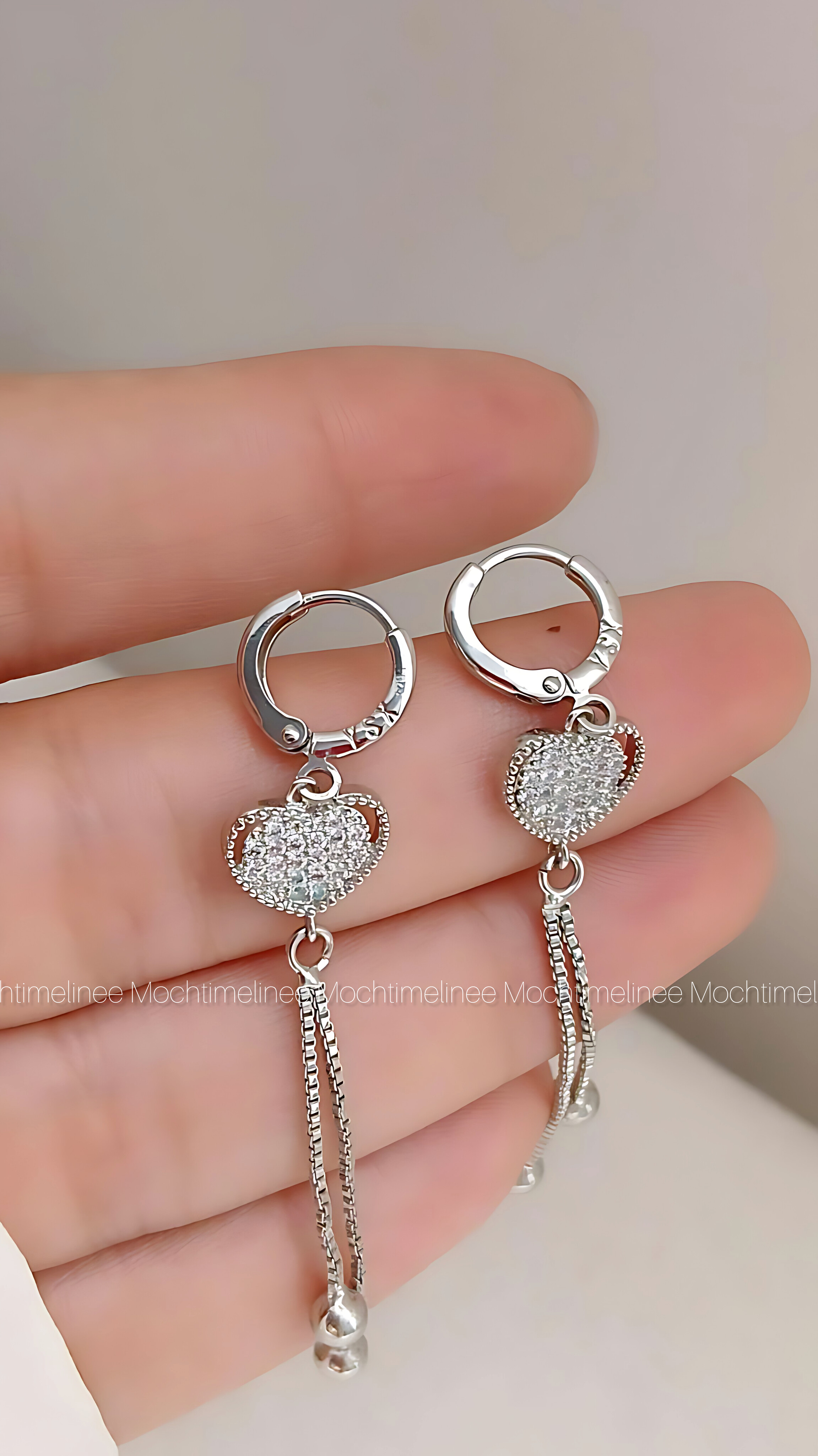 گوشواره آویز مارک وای اس ایکس YSX با حک روی قفل همراه با نگین های مخراج کاری شده و کاملا مشابه طلا با رنگ نقره ای و ثبات رنگ