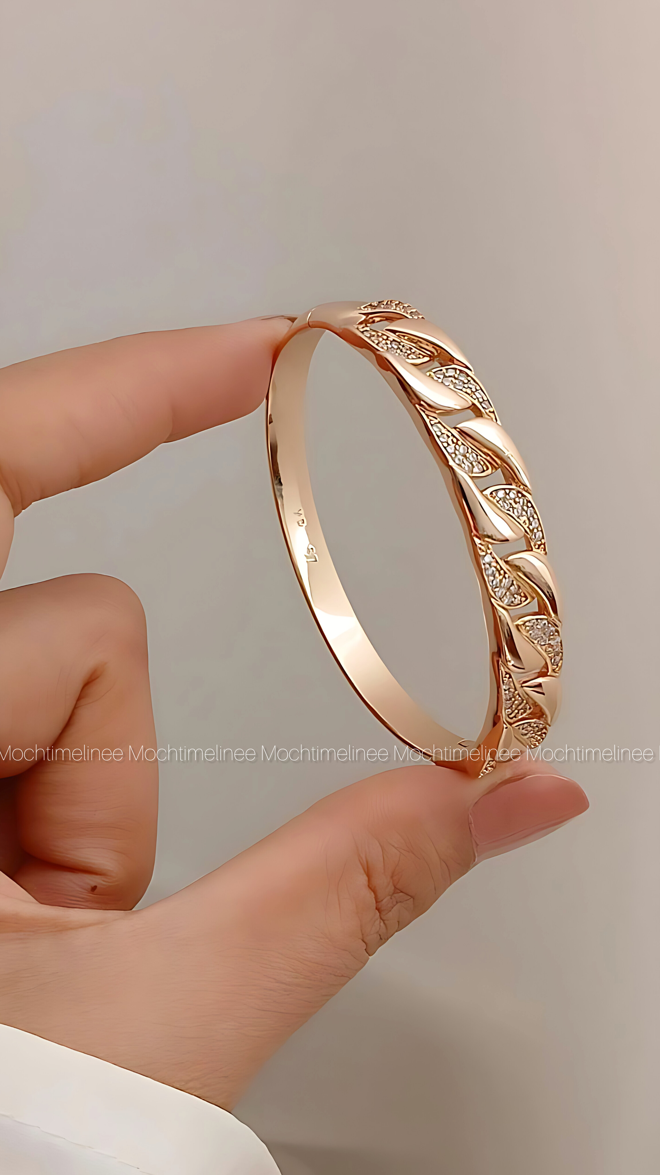 دستبند طرح طلا ژوپینگ آبکاری طلا کارتیه و نگین های مخراج کاری شده با قفل فشاری و حک مارک ژوپینگ داخل دستبند مناسب مچ های بین ۱۵ تا ۱۹ سانت