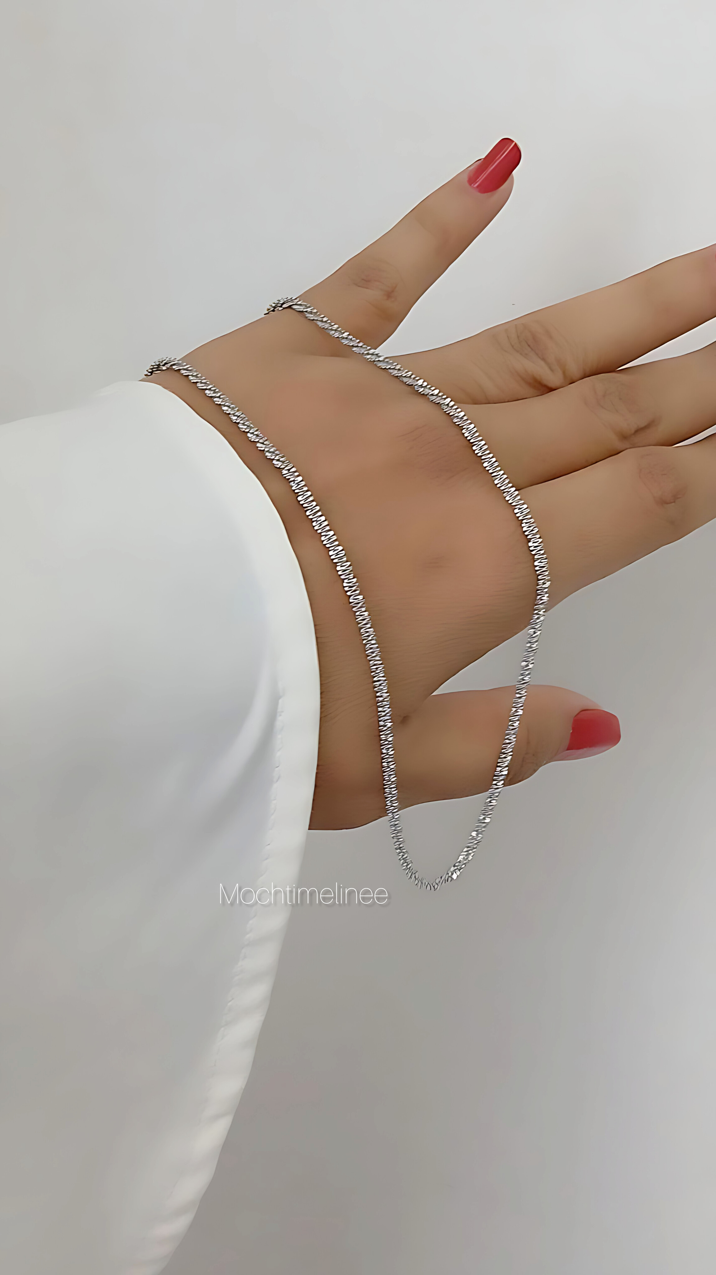 گردنبند خاویاری بی شک پر درخشش ترین گردنبندی که میتونین داشته باشین همین گردنبند خاویاری هست، تمام استیل و فوق العاده آبکاری قوی داره دارای زنجیر قابل سایز شدن طول گردنبند ۴۵ تا ۴۸ سانت رنگ نقره ای