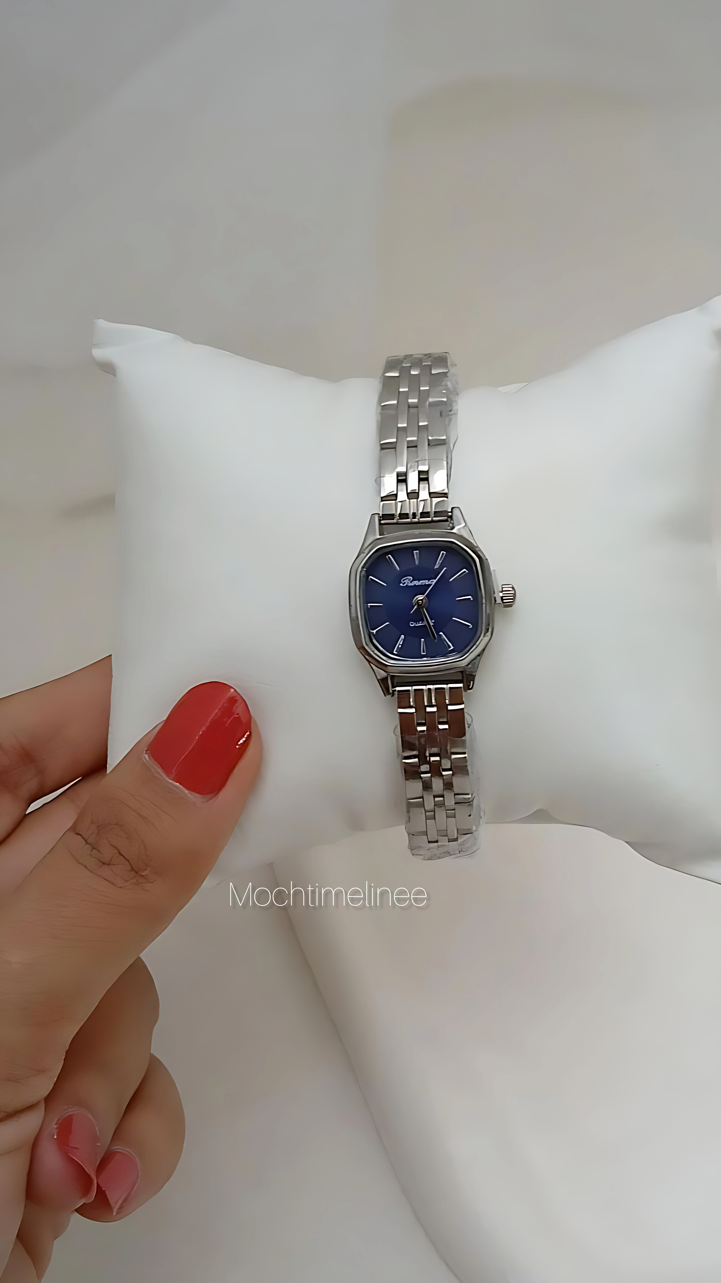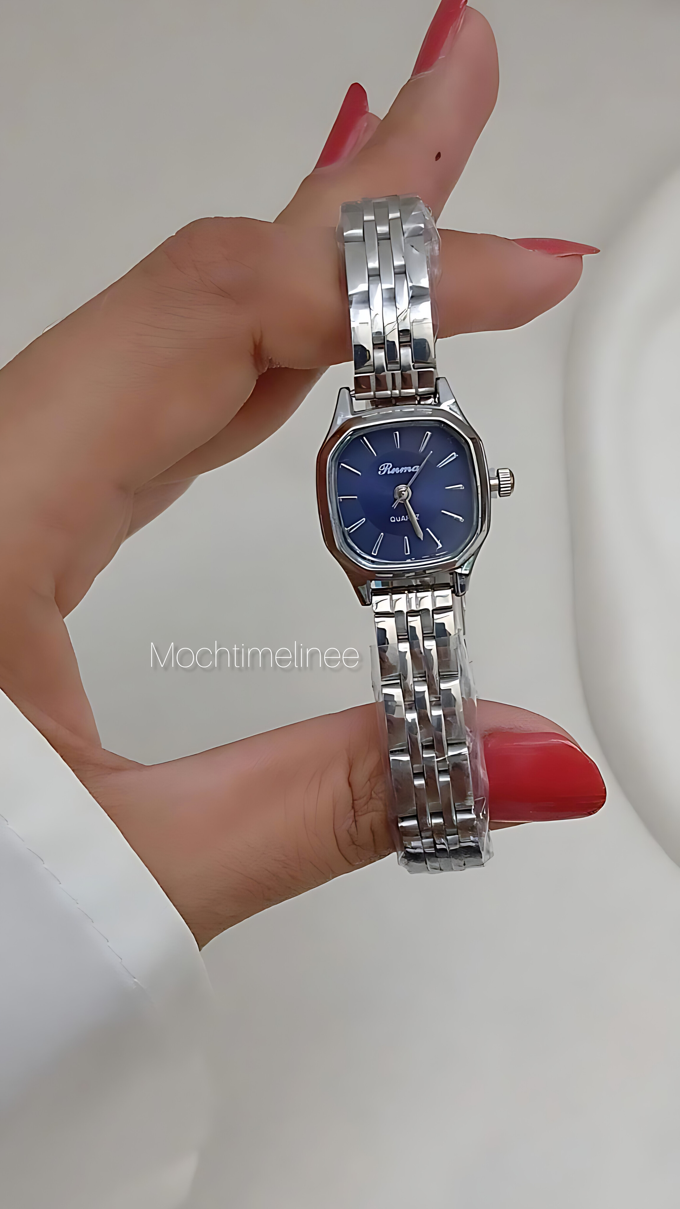 ساعت صفحه مربعی RANMA بک و بند استیل صفحه آبی کاربنی طرح قفل کلیپسی ضامن دار بسیار خوش دست
