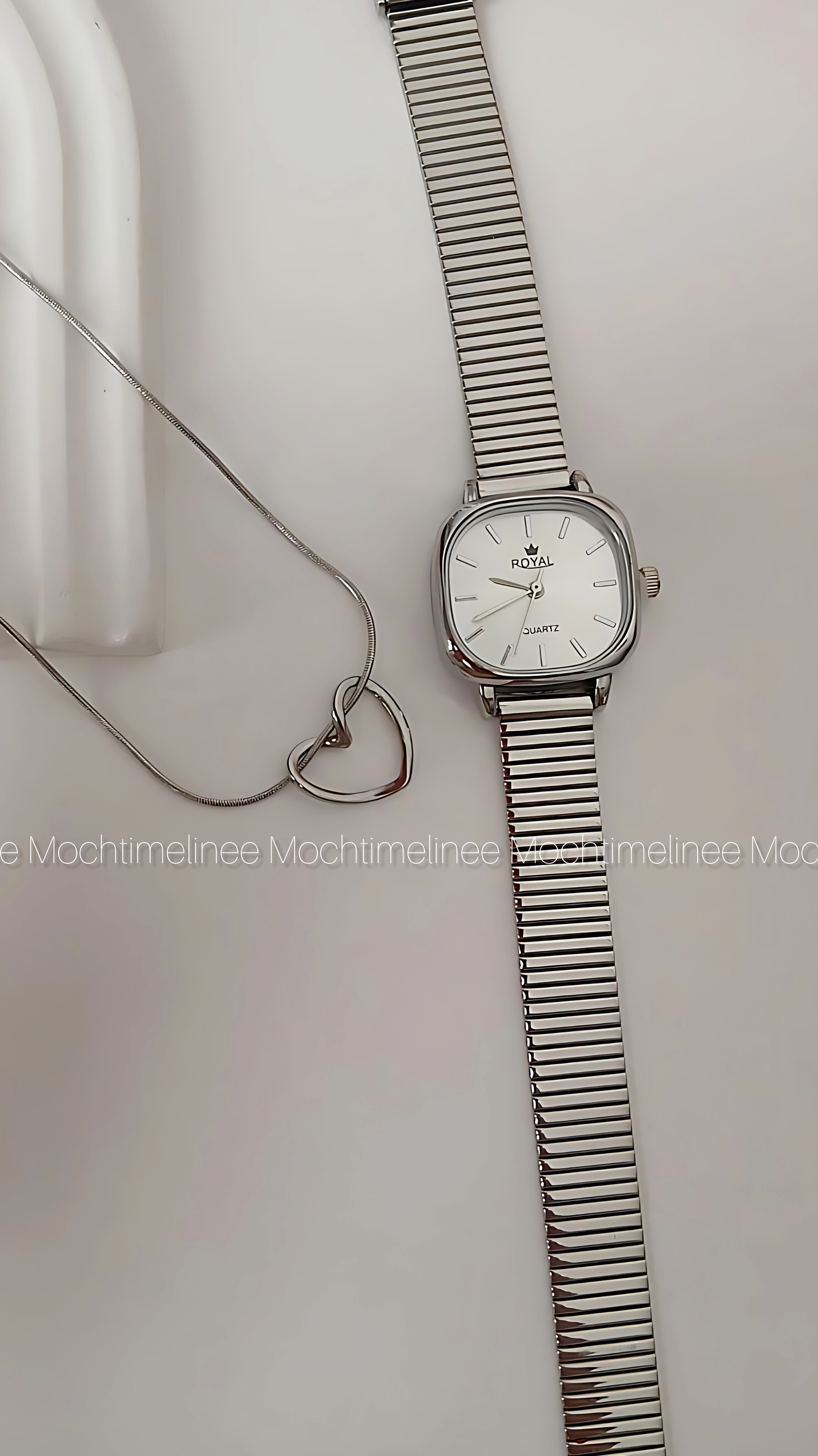 ساعتمچی زنانه نایدو با بند ریلی قابل تنظیم موتور کوارتز و باتری قابل تعویض بند تمام استیل شیشه الماسی میتونید دستبند توپی و گردنبند قلب دفرمه رو همراهش سفارش بدین
