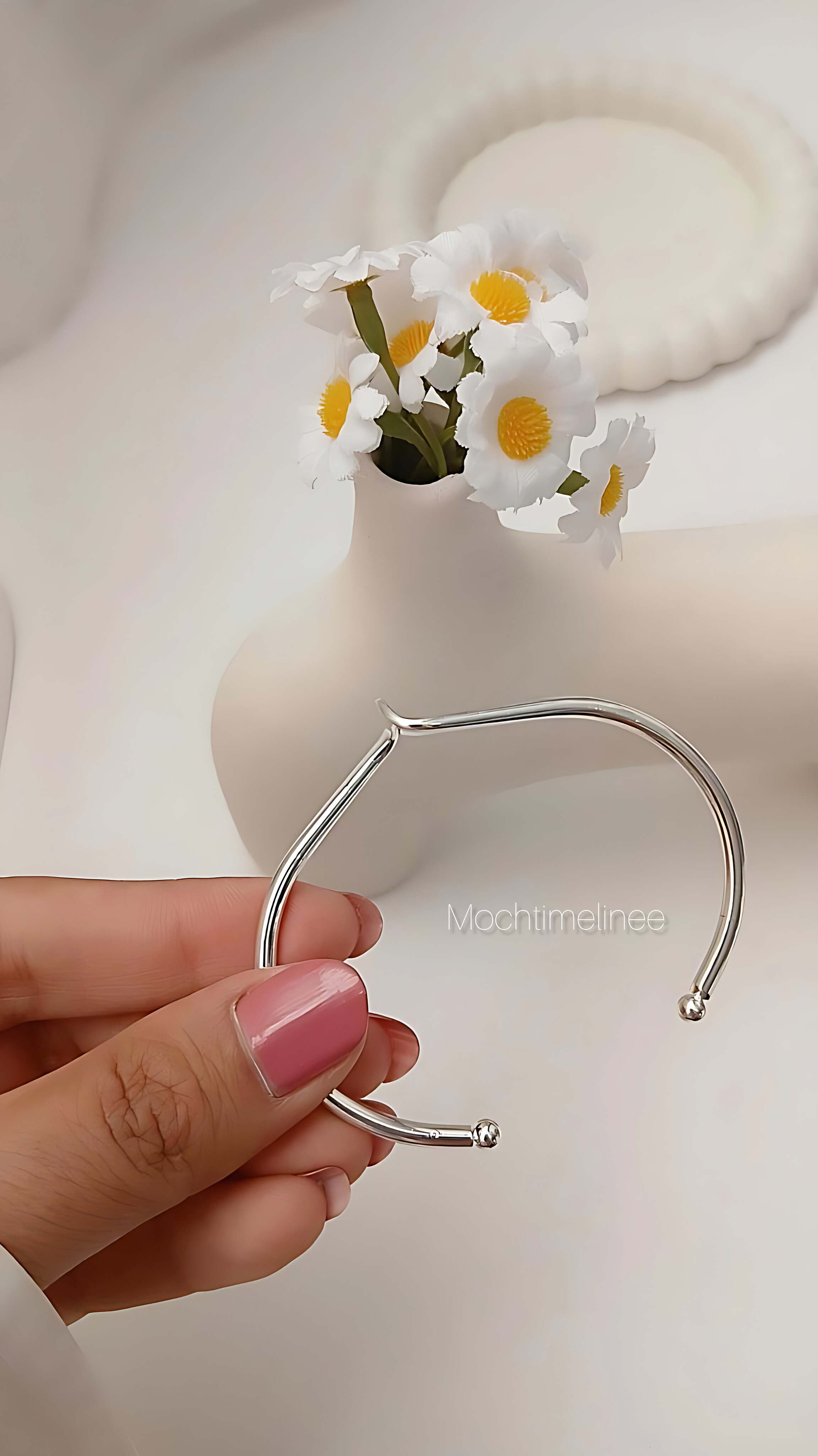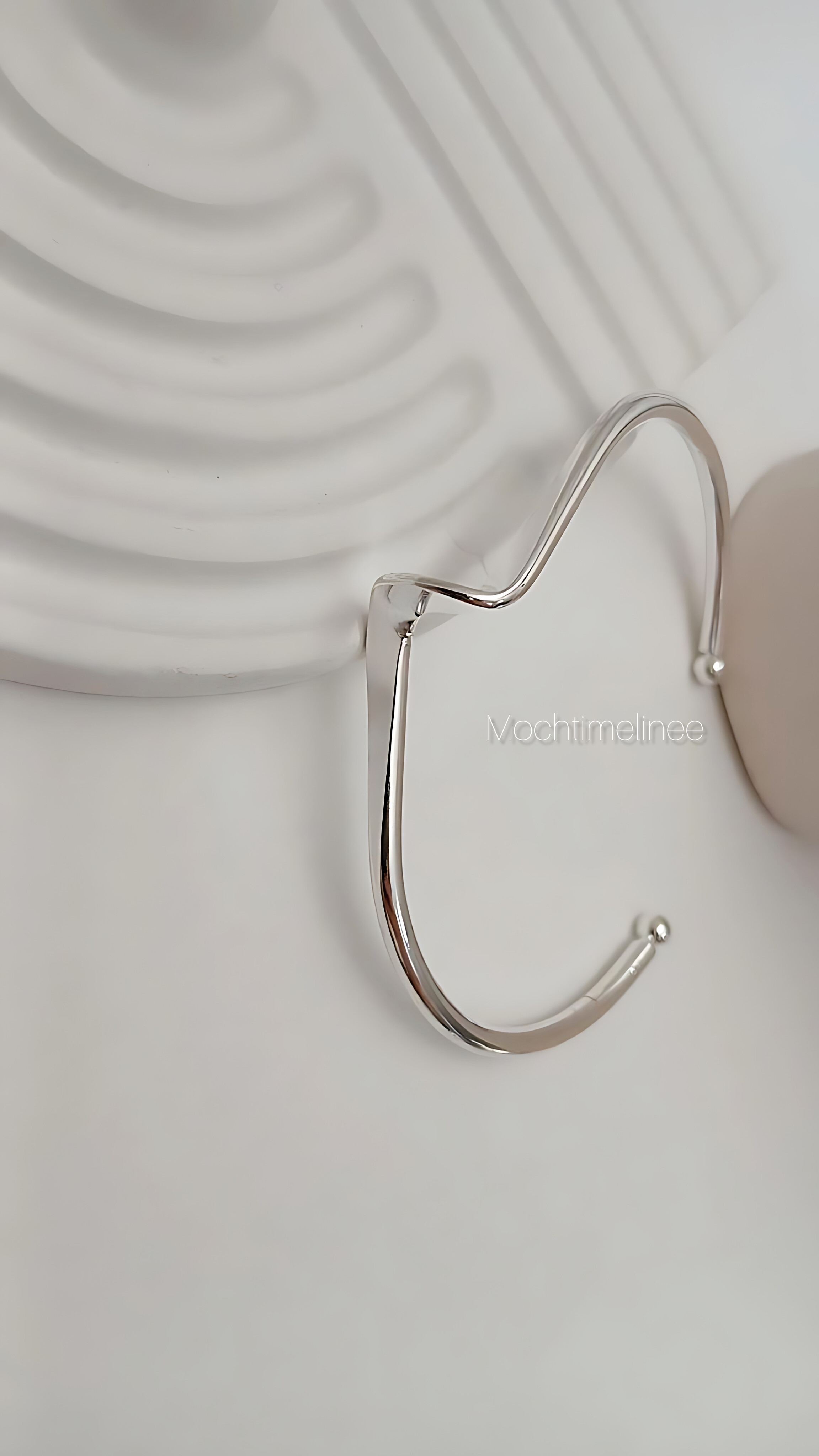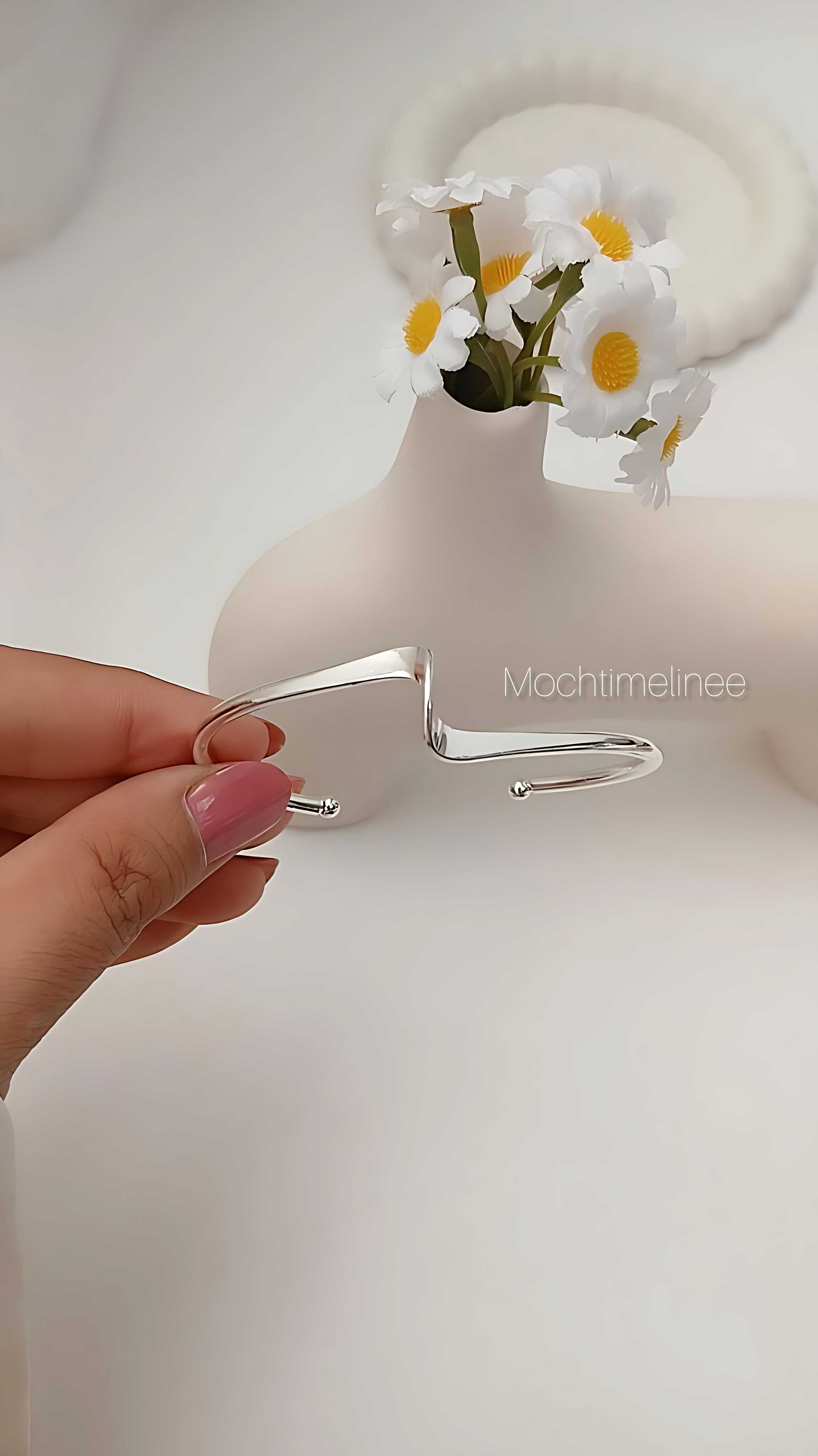 بنگل طرح موج فری سایز نقره ای رنگ ثابت ترند سال ۲۰۲۵ فوق العاده در دست طرح مینیمال پر طرفدار براق